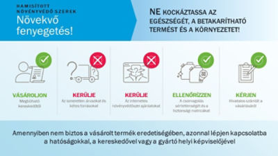 Mindíg megbízható kereskedőtől vásároljunk, aki rendelkezik a megfelelő engedélyekkel! Vásárlás előtt győzödjünk meg a növényvédőszer eredetiségéről. Az illegális, hamisított növényvédőszerek alkalmazása bűncselekménynek minősül. Az eredeti termékekhez hasonlító, de hamisított termék kárt okozhat a kezelni kívánt kultúrnövényben, káros lehet az egészségünkre és a környezetre is.